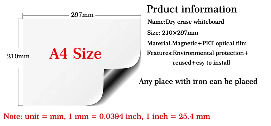 • This Board is Magnetic, Stick to Metal Surface Automatically. Need Tape for Wooden Surface and Wall.